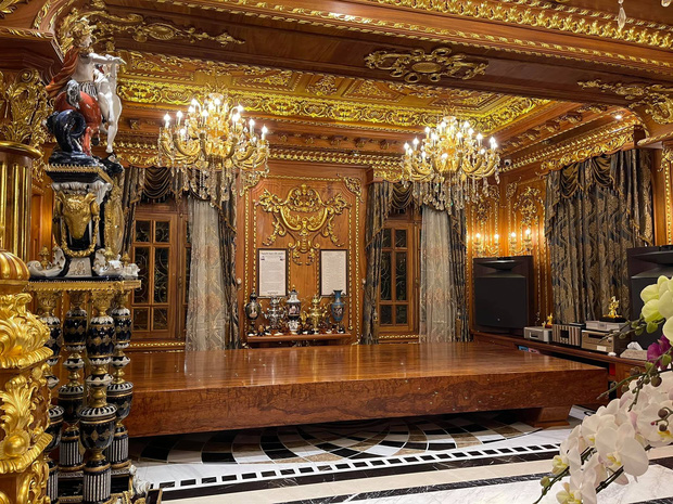 Khu vực nào cũng được đầu tư rất kỳ công. Riêng phòng thờ có nhiều nội thất mạ vàng, khảm trai, là khu vực được chú trọng nhất. Được biết, tổng chi phí mà ba mẹ chị Vân đã đầu tư cho căn biệt thự rơi vào khoảng 300 tỷ đồng.