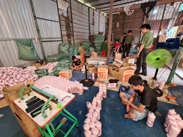 Kiểm tra nhà kho của công ty này, lực lượng chức năng còn phát hiện hơn 5.000 thùng nước tẩy rửa đã thành phẩm được dán các nhãn mác nói trên chuẩn bị xuất bán, thu giữ rất nhiều thùng hóa chất, tem nhãn giả, chai nhựa… là nguyên liệu để làm hàng giả.