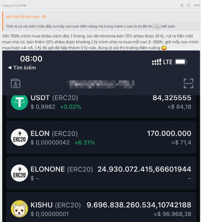 Cơn tham lấn át thằng người, tớ giấu ông xã rút tiết kiệm đâm 1 tỷ vào Dogecoin* hôm 8/5. Đợt đấy đà lên quá mạnh, dự phải X3 nên mình liều.