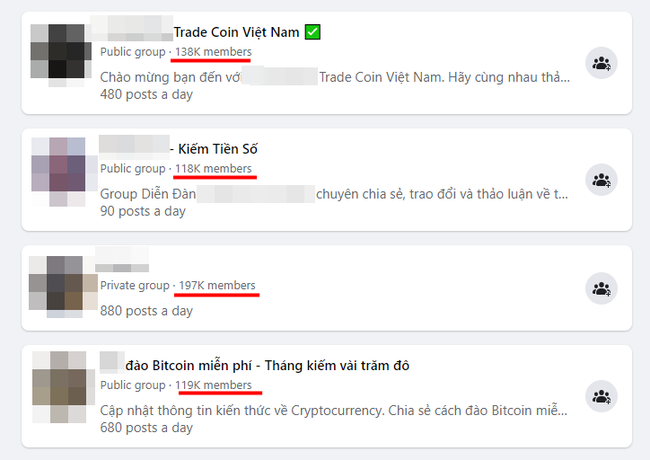 Một ví dụ khác cho thấy tiền số hot thế nào với người Việt: Lên Facebook gõ từ khóa "bitcoin" - sẽ cho ra ngay cả loạt hội nhóm tiếng Việt, hầu hết đều có trên 100.000 thành viên.