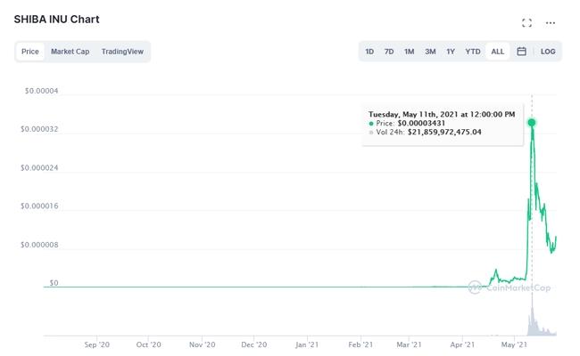 Tớ bán hết Doge ôm tiền về nghe ngóng tiếp thì một lão trên nhóm phím cho con SHIBA INU, cũng hot, trong tháng 4 đã nhân mấy lần rồi. Lần này tớ cắt đôi vốn, đâm 350 triệu đúng hôm nó lên sàn (11/5).
