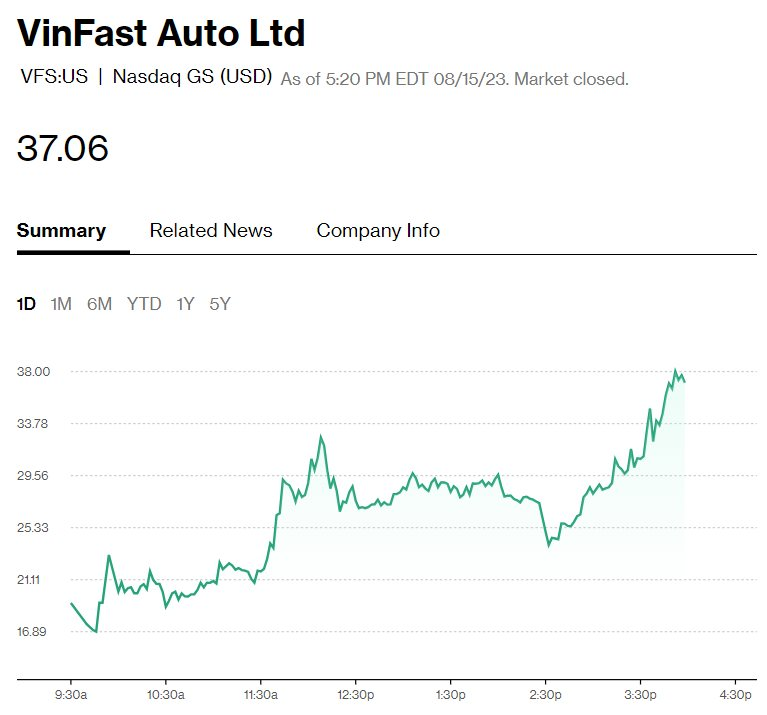 Về cuối ngày, VinFast tăng tốc lên 37 USD/cp, tương ứng vốn hoá lên đến 85,5 tỷ USD.