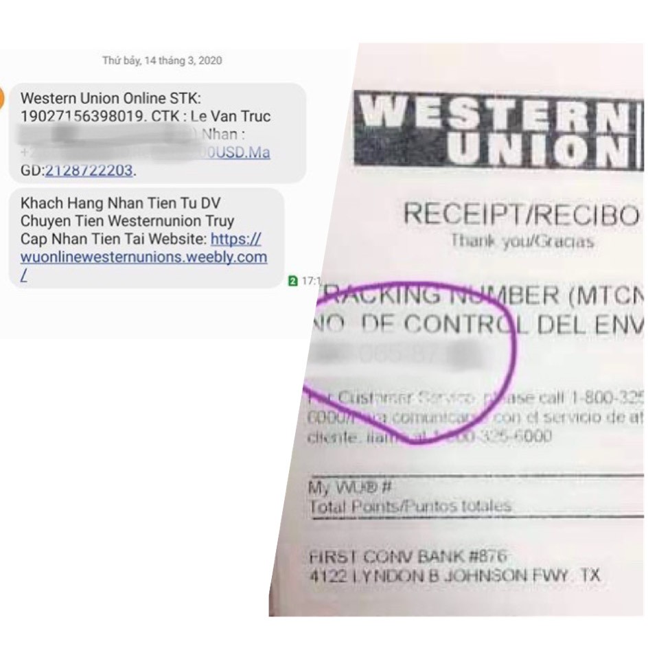 Thông qua điện thoại di động hoặc các nền tảng mạng xã hội như zalo, facebook, các đối tượng sẽ gửi một tin nhắn đường link giả mạo website của dịch vụ chuyển tiền quốc tế Western Union; dẫn dắt các bị hại tiến hành các bước đăng nhập vào đường link này, nhằm rút tiền mà các bị hại tin rằng các đối tượng đã trả thanh toán mua hàng.