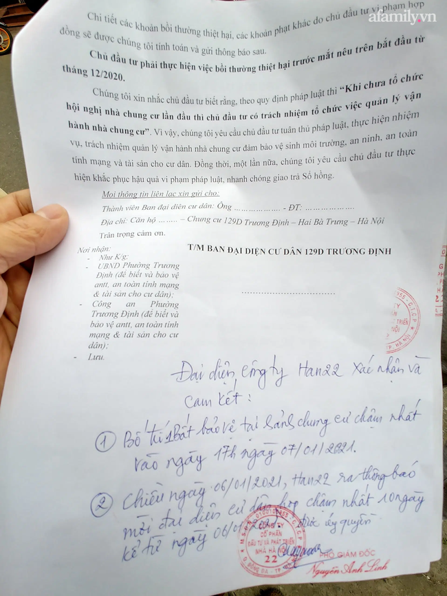 "Tuy nhiên, đến nay chúng tôi được biết chính thức là Tòa nhà chung cư và nơi ở của chúng tôi là bị xác định là không hợp pháp (vì đến nay tòa nhà vẫn chưa được cơ quan Nhà nước có thẩm quyền chấp thuận nghiệm thu hoàn thành công trình đưa vào sử dụng) và Biên bản bàn giao căn hộ cũng không hợp pháp nên chúng tôi không được cấp Sổ tạm trú, Sổ hộ khẩu và Sổ hồng", cư dân phản ánh.