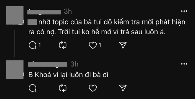 Ngày 28/3 vừa qua, trên trang Threads cá nhân, một người dùng đã kể lại trải nghiệm có phần không mấy tích cực khi sử dụng ví điện tử. Theo thông tin được người này chia sẻ, ví điện tử cô đang dùng đã tự động kích hoạt “Ví trả sau”, và thanh toán những hóa đơn không rõ là hóa đơn gì. Tổng số tiền đã bị trừ từ “Ví trả sau” này là 1.194.000 đồng. Đây cũng chính là khoản nợ mà cô phải thanh toán.