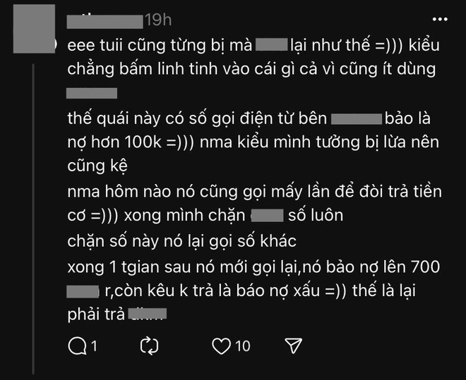 Cũng có không ít người rơi vào tình cảnh tương tự, tự nhiên mắc nợ, bị đòi nợ mà không hiểu khoản nợ ấy từ đâu ra. Một vài người thường dùng Ví điện tử này để thanh toán hóa đơn đặt xe công nghệ, đặt đồ ăn online hoặc phí đăng ký các ứng dụng xem phim, nghe nhạc trực tuyến và nguồn tiền thanh toán cũng được tự động trích từ “Ví trả sau”.