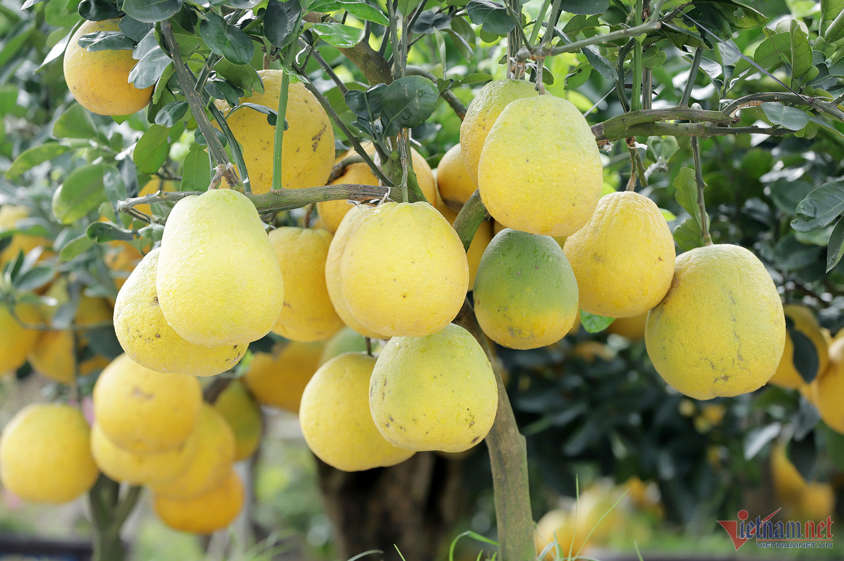 Vườn bưởi Diễn trái chín vàng óng, có mùi thơm dễ chịu khi người xem đến gần. Các quả bưởi được bảo quản kỹ lưỡng, sắp xếp đều quanh thân.