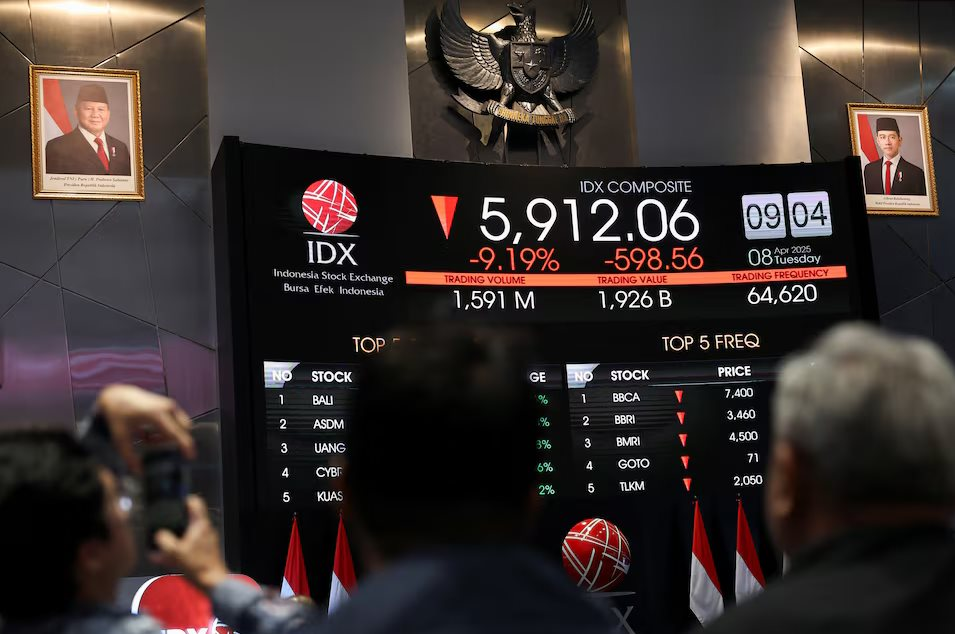 Trong phiên giao dịch đầu ngày 8/4, chỉ số chính của Sở Giao dịch Chứng khoán Indonesia (IDX) giảm 9,2% xuống còn 5.912 điểm, mức thấp nhất kể từ tháng 6/2021. Ngay sau đó, IDX đã thông báo tạm ngưng giao dịch trong 30 phút để ứng phó với việc thị trường chứng khoán sụt giảm mạnh.