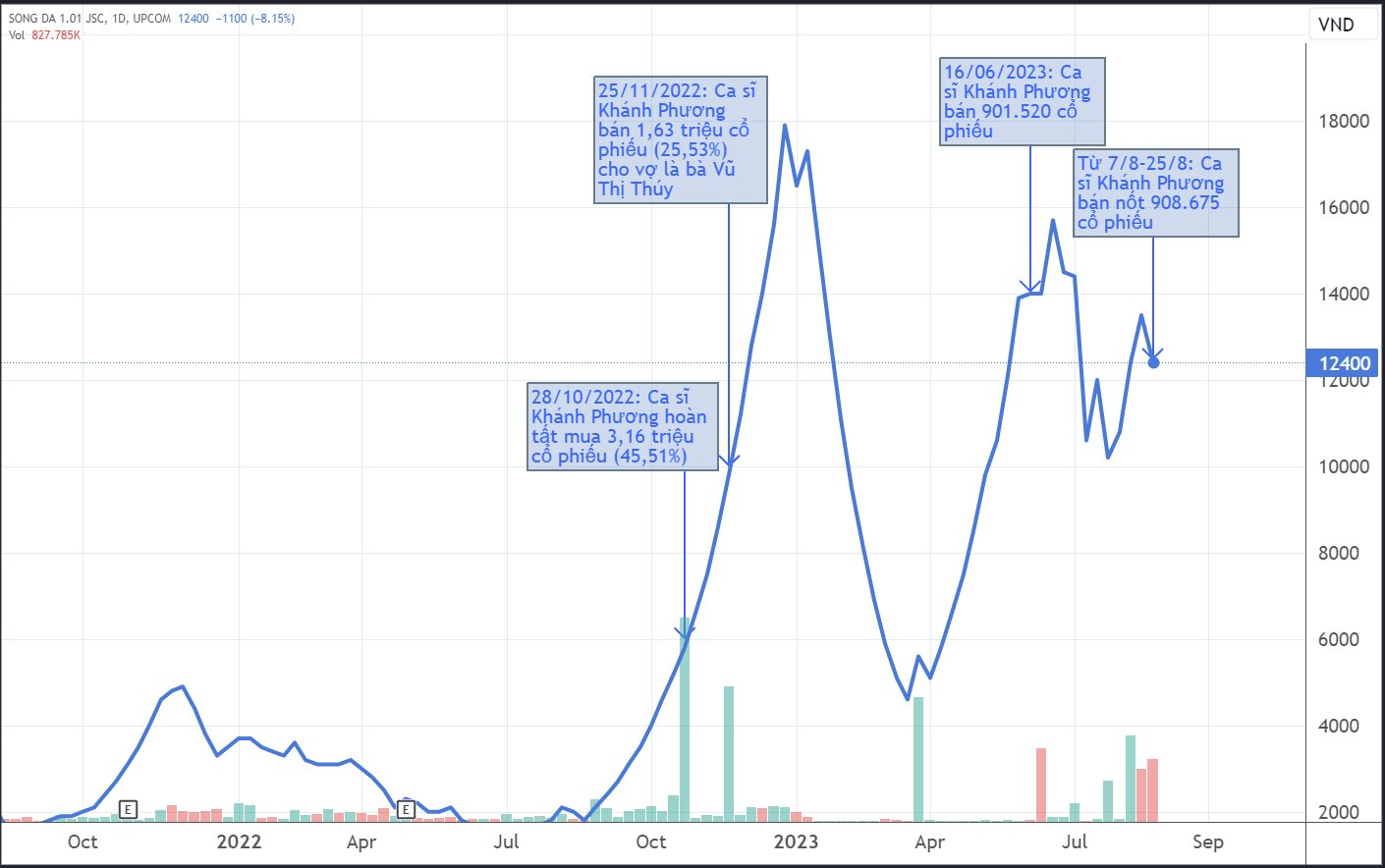 05/09/2023 22:45Ca sĩ Khánh Phương thoái sạch vốn tại Sông Đà 1.01, kết thúc 14 tháng mua bán sôi nổi trên thị trường chứng khoán