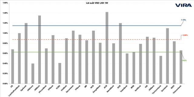 Trong đó, lãi suất VND các kỳ hạn ngắn đều lần lượt vọt qua mốc 1%/năm và thiết lập mặt bằng mới cao gấp 3 lần thời điểm hồi đầu năm.