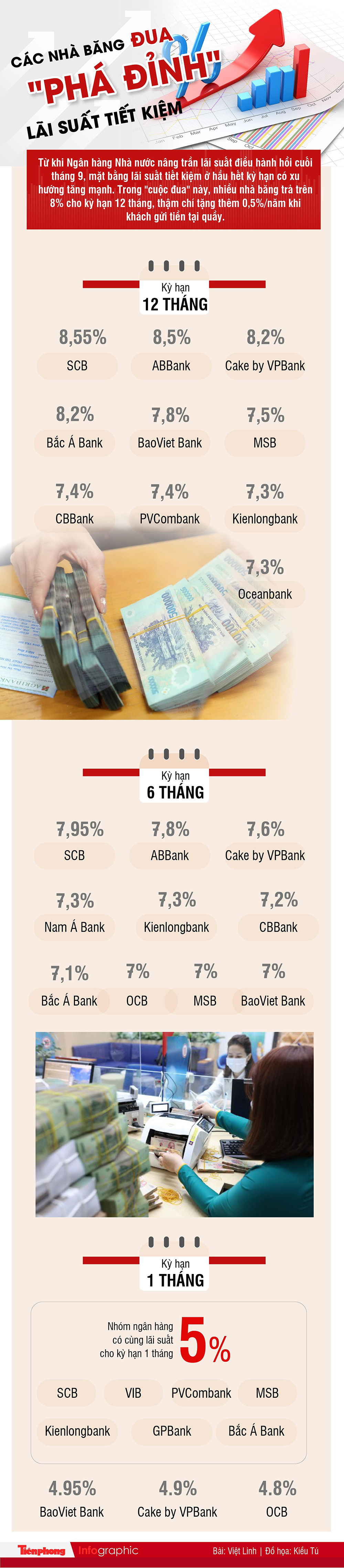 13/10/2022 20:58Các nhà băng đua 'phá đỉnh' lãi suất tiết kiệm