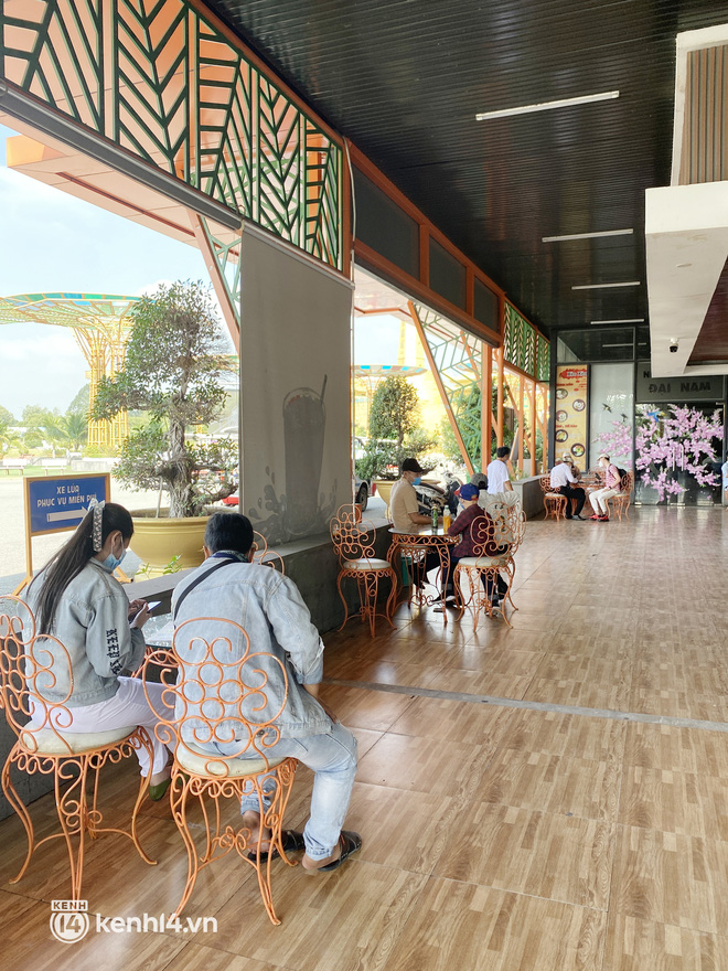 Trước khi đi ăn, du khách sẽ nhận được số của xe đưa đón về quán ăn. Trong quá trình đang vui chơi, bất cứ khi nào muốn quay về địa điểm ăn trưa, khách chỉ cần gọi tới số xe để được đón về tận nơi. Cận cảnh bên trong quán ăn của KDL Đại Nam. Có thể thấy, bàn ghế trong quán ăn khá giản dị như nhiều nơi khác. Điểm ấn tượng nhất chính là thiết kế, trang trí bên trong mang đậm chất KDL Đại Nam.