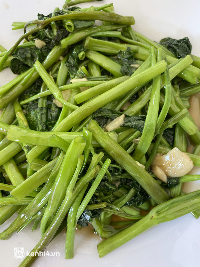Còn đây chính là mâm cơm 500k trong thực đơn của "Quán ăn Kiều Diễm". Các món ăn đều khá quen thuộc như rau muống xào, thịt kho trứng, bò xào, canh dọc mùng... Một mâm như vậy đủ cho khoảng 2 - 4 người ăn.