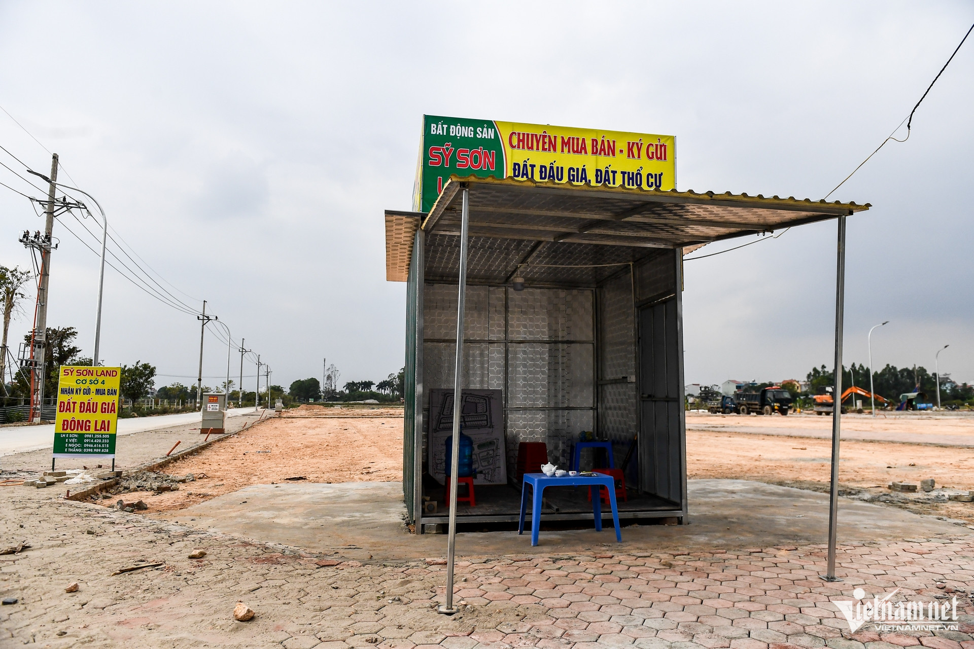 Ki-ốt tư vấn của ông Sỹ Văn Sơn được dựng tạm ngay trên khu đất. Người đàn ông làm nghề môi giới cho biết, từ khi khu đất sốt lên sau phiên đấu giá, rất nhiều người liên lạc để hỏi giá cả.