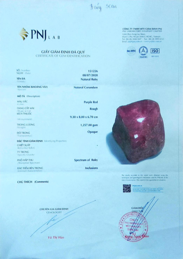 Đến thời điểm 9/2020, PNJL không thể hiện định giá trên giấy giám định đá quý nhưng giấy kiểm định giả lại có nội dung giá.