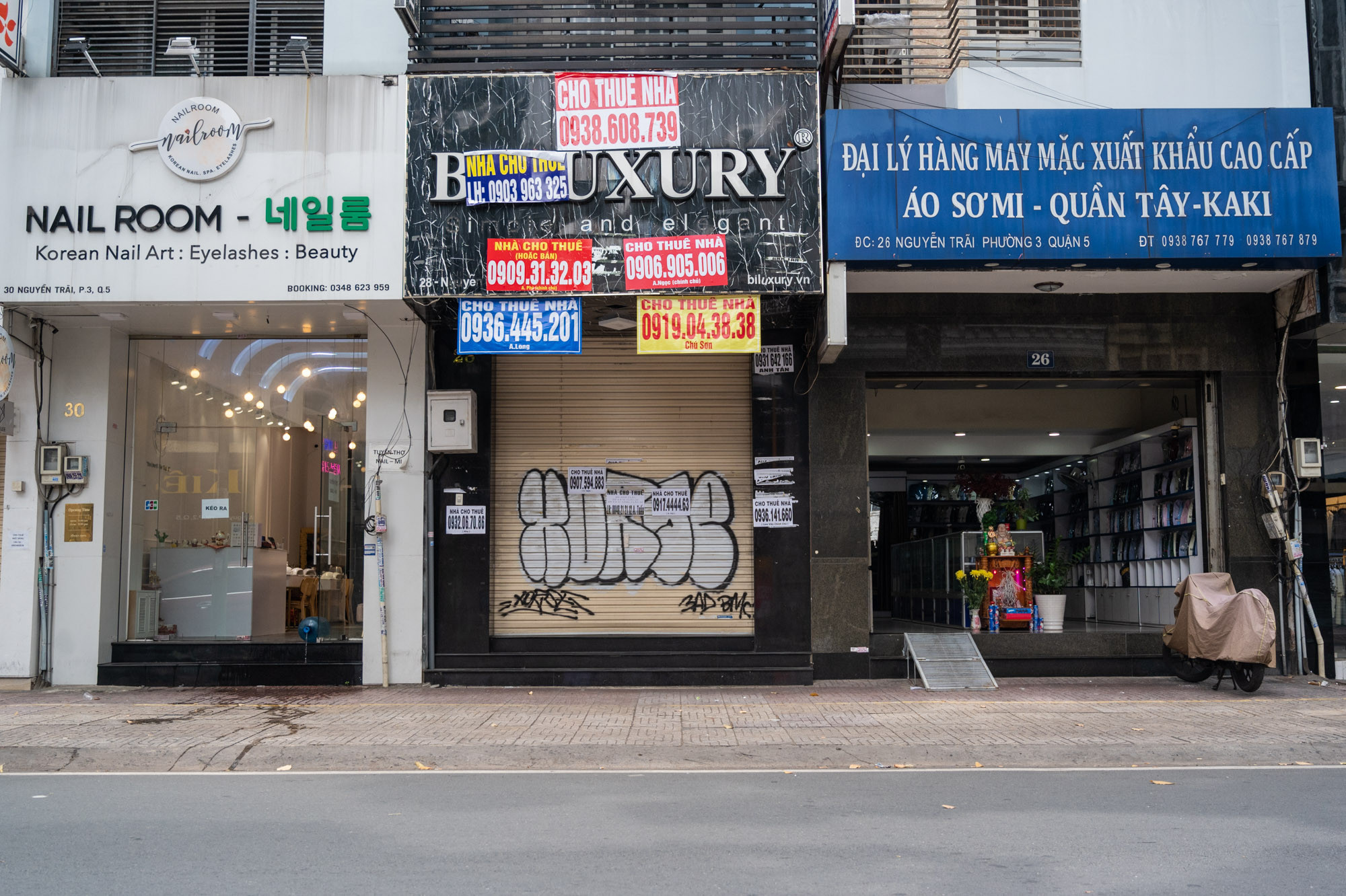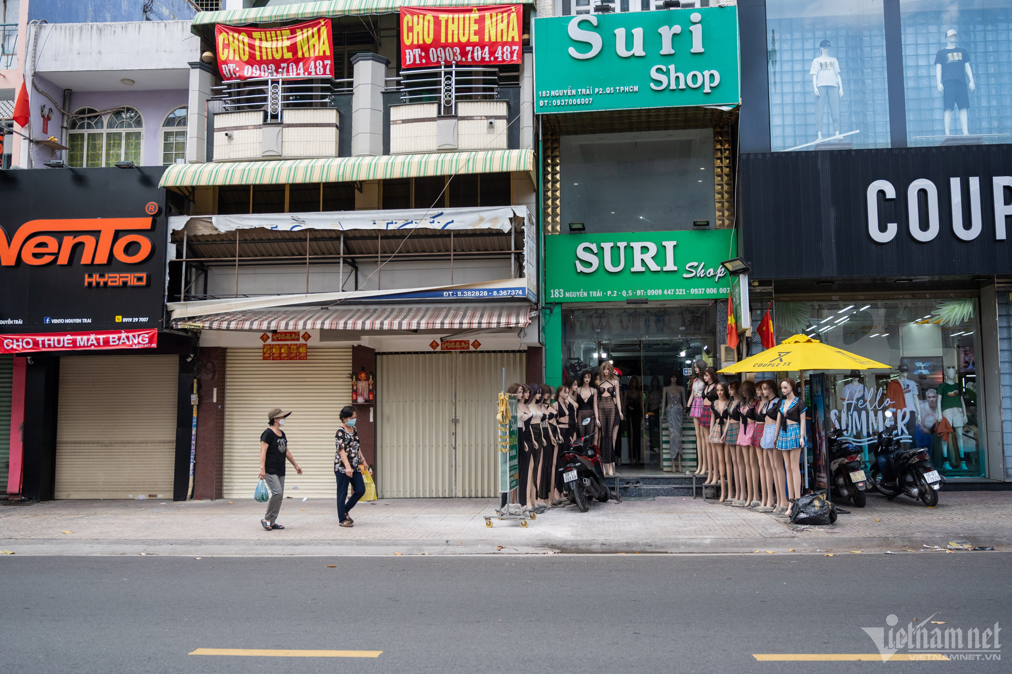 Dù vào cuối tuần, các tuyến đường có nhiều tiệm kinh doanh thời trang như Nguyễn Trãi và xung quanh hồ Con Rùa (TP.HCM) vẫn bị vắng khách. Cảnh treo biển rao cho thuê lại mặt bằng xuất hiện nhan nhản.