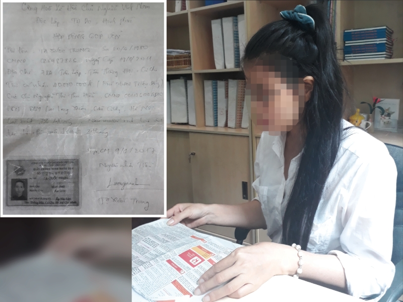 | Chị Thu Hiền đến báo Pháp Luật TP.HCM phản ánh và hợp đồng góp vốn bằng giấy tay với ông Tr. Ảnh: N.HIỀN |