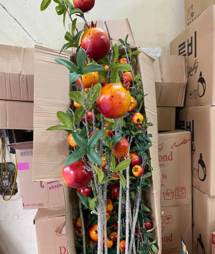 Gần đây, trên chợ mạng xuất hiện những cành lựu giả được làm như thật. Dù có giá từ 100.000-120.000 đồng/cành, tính ra để có 1 bình lựu đẹp cần khoảng 10 cành với tổng số tiền hơn 1 triệu, nhiều chị em vẫn đặt mua vì trông “thích mắt” và mang ý nghĩa phong thủy cho ngày Tết.