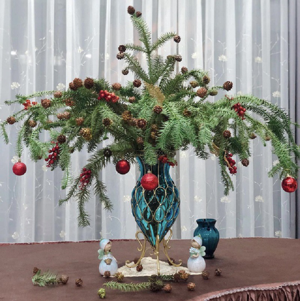 Mọi người năm nay thích chơi cành thông có dáng thế sẵn, cành to cao tầm 100cm, chỉ cần cắm 1 cành là đủ mang không khí Noel cho cả căn phòng.