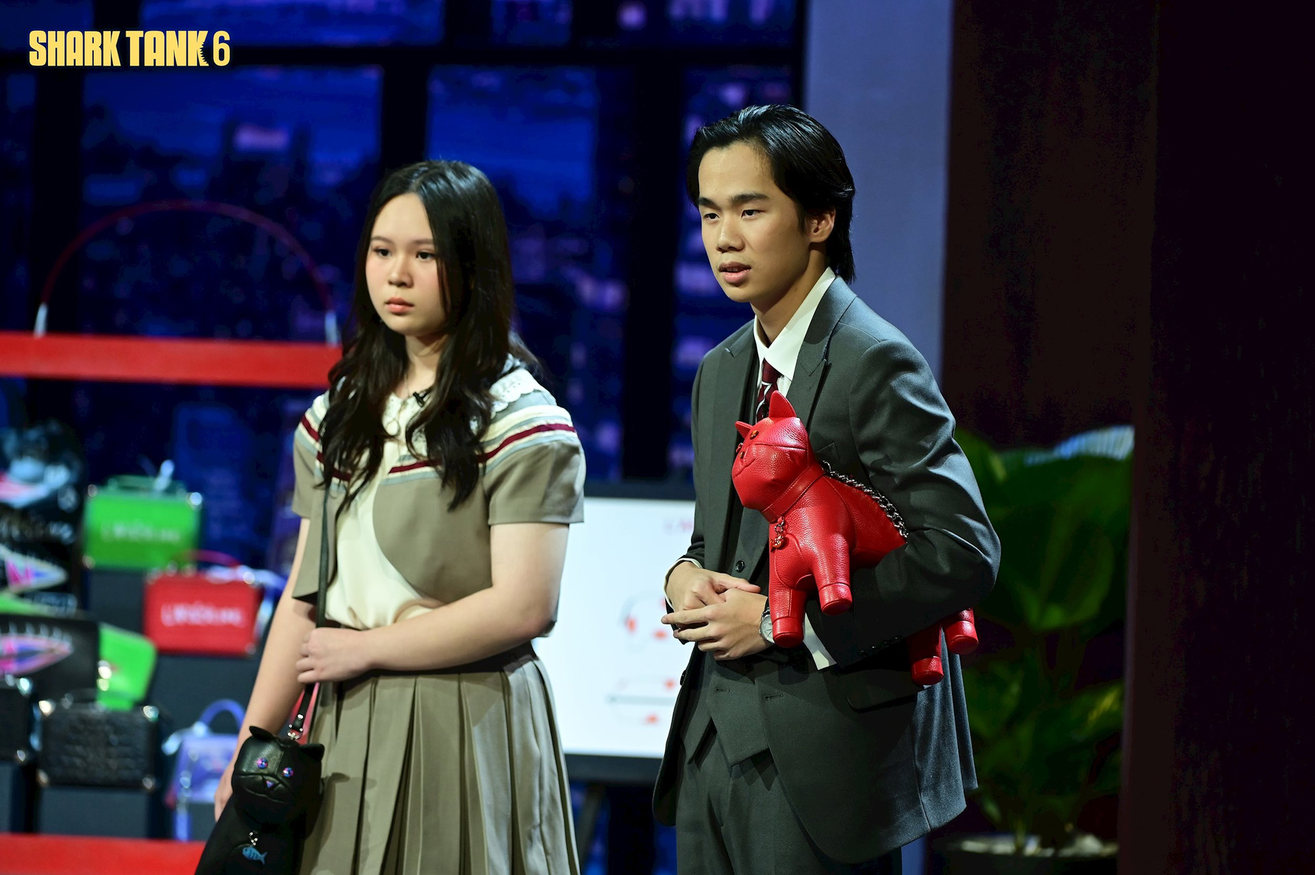 Lên sóng Shark Tank, Phúc Khang và Khánh Linh muốn kêu gọi 300 triệu đồng cho 15% cổ phần để đầu tư vào việc sản xuất bộ sưu tập mới có tên “Le Chat”. Chiếc túi được thiết kế hình con mèo “độc lạ”, với điểm nhấn là sơn mài độc bản ở cổ, mắt mèo và khóa kéo.