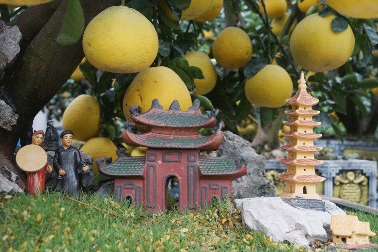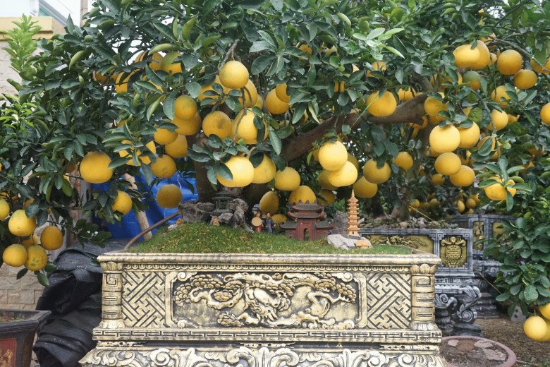 Anh Thắng cho biết, đây là giá rất hữu nghị, chỉ bán cho người có duyên với sản phẩm, dù trước đó cũng có khách trả giá nhưng anh chưa “chốt đơn”. “Tôi không dám nói sản phẩm này là “có một không hai”, nhưng nhìn về độ bề thế từ chiếc ang, thế đứng của cây, rồi tiểu cảnh phối kết hợp dưới gốc là "bưởi chạm cổng làng, mái đình, bảo tháp" rất bắt mắt, mang lại nhiều phong thủy tốt với người chơi có duyên mua được. Đó là chưa kể hai cây bưởi này sai trĩu quả mà ngay cả bản thân tôi là chủ cũng không đếm hết được số quả trên cây”, anh Thắng cho hay.