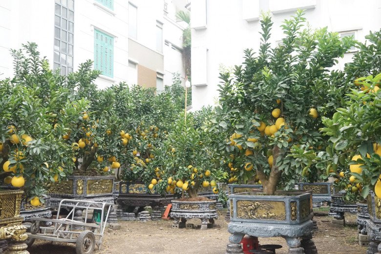 Dù giá không hề rẻ, nhưng chủ quán cho biết khi cây vừa chuyển ra điểm tập kết đã có người vào chọn mua. Anh Thắng (chủ nhà vườn Kim Thắng) cho biết, các sản phẩm bưởi tết của gia đình anh có đủ mọi phân khúc, giá từ 10 triệu đến hàng trăm triệu. Trong đó, sản phẩm ở phân khúc khoảng 20-40 triệu đồng/gốc chiếm đa số. Đáng nói, tại nhà vườn này đang rao bán một đôi bưởi, có phối hợp tiểu cảnh bắt mắt với giá 150 triệu đồng.