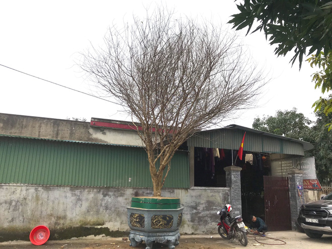 Hiện chị Thương đã cẩu cây nhỏ lên chậu và để trước cổng nhà. Riêng cây to 9 cành đang được chị trồng và chăm sóc phía sau vườn nhà.