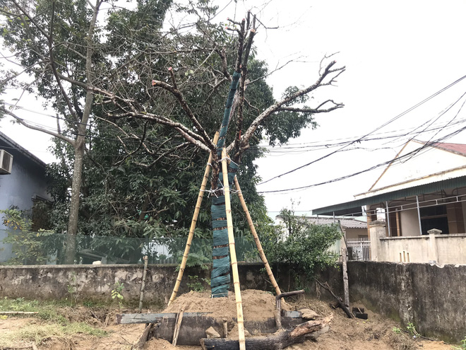 Do cây có kích thước quá lớn, các nhánh cây tỏa ra rộng nên quá trình di chuyển về thành phố Vinh chị Thương phải cắt ngắn bớt.