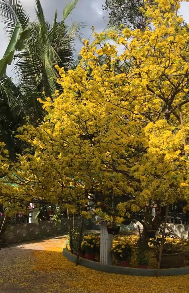 Thời gian gần đây, trên mạng xã hội liên tục chia sẻ những bức hình ghi lại cây mai khổng lồ trong sân một gia đình. Từ những bức ảnh có thể thấy, cây mai vàng có kích thước khá lớn, cả một tán cây được bao phủ bởi màu vàng rực rỡ của hoa mai tạo nên khung cảnh đẹp như trong tranh trước sân nhà.
