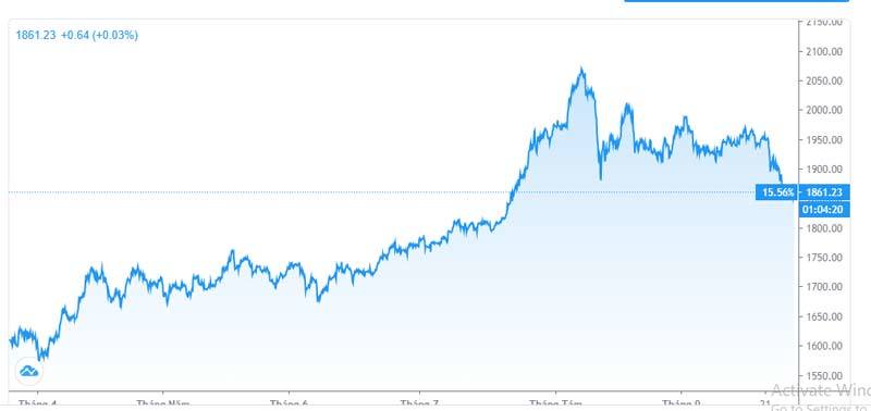 Trước đó, trong tuần đầu tháng 8, giá vàng thế giới đã tăng lên mức cao chưa từng thấy trong lịch sử: 2.070 USD/ounce (59 triệu đồng/lượng) trong bối cảnh các nhà đầu tư cố gắng tìm kiếm công cụ đầu tư an toàn giữa lúc đại dịch Covid-19 ảnh hưởng tới tất cả các nền kinh tế. Tuy nhiên, từ đó đến nay, giá vàng đã giảm.