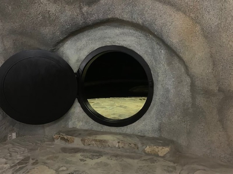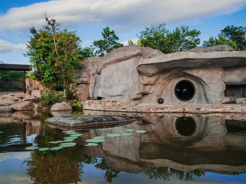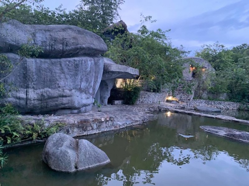 Hang đá nơi Đặng Lê Nguyên Vũ ở ẩn được phục dựng từ một cái hang tự nhiên âm vào lòng đồi. Bên trong có các vật dụng đơn giản như bàn ghế, đèn báo bão, đồ dùng và máy móc pha cà phê...
