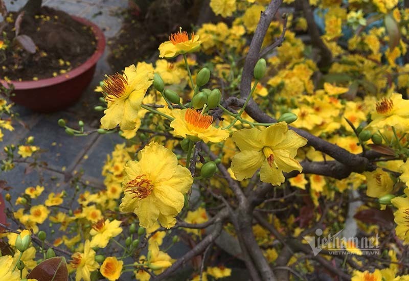 Nhờ thời tiết ủng hộ nên mai năm nay nở đều, đẹp, nhiều nụ, nhất là thời điểm này Hà Nội đang rét nên hoa sẽ nở chậm lại, vừa đẹp để chơi Tết đến ra Giêng. Ngoài ra, những cây mai từ 5-10 năm tuổi anh có khoảng 150 cây, giá dao động 2-7 triệu đồng tùy theo tuổi, dáng thế của từng cây.