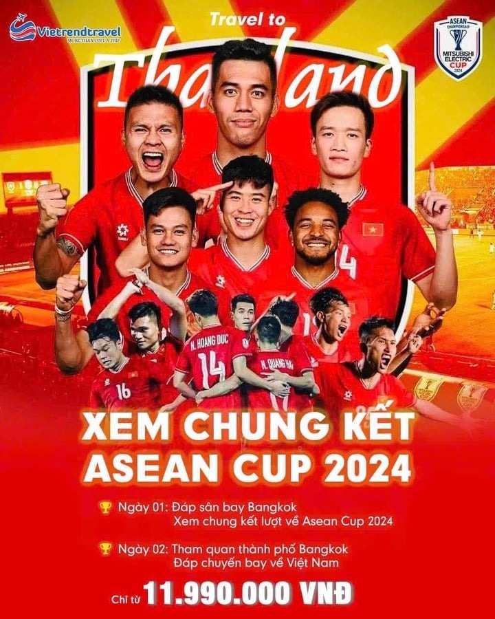 Tour du lịch Thái Lan xem đội tuyển Việt Nam đá chung kết lượt về AFF Cup 2024 hiện có mức giá: Tour 2 ngày 1 đêm khoảng 12.990.000 đồng/người; Tour 3 ngày 2 đêm khoảng 14.990.000 VNĐ/người.