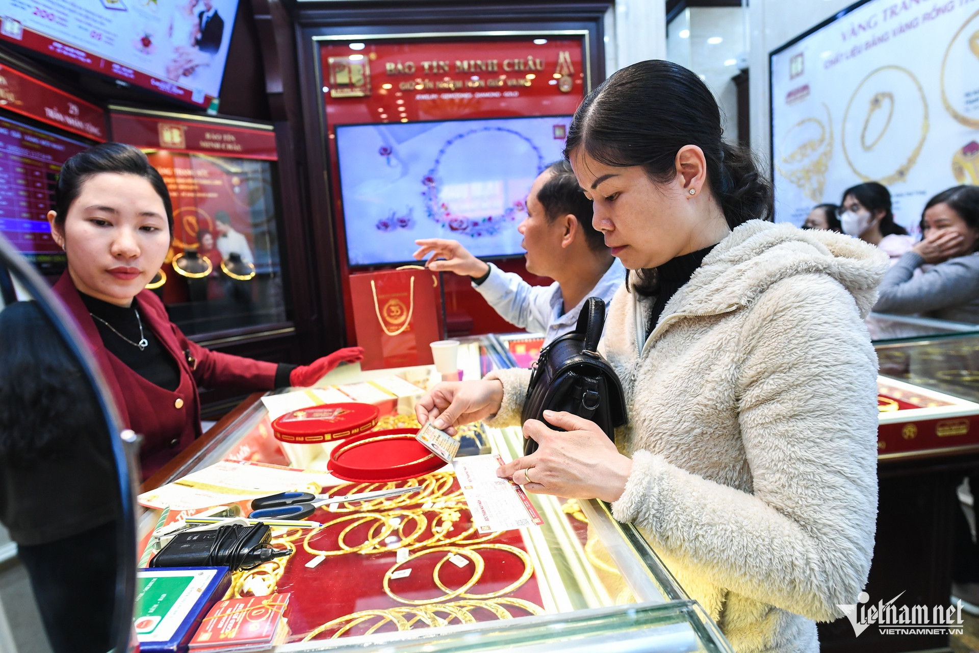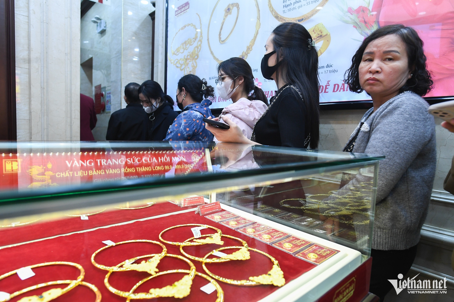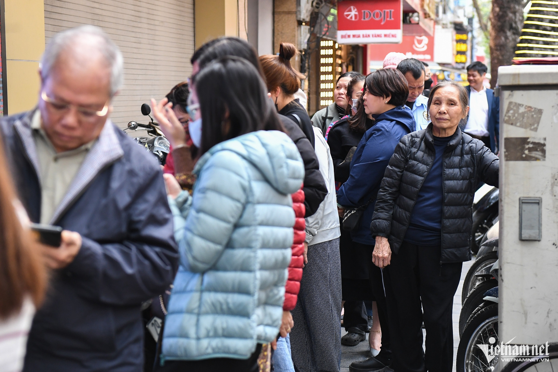 14h, dòng người vẫn kéo dài bên ngoài cửa hàng vàng.