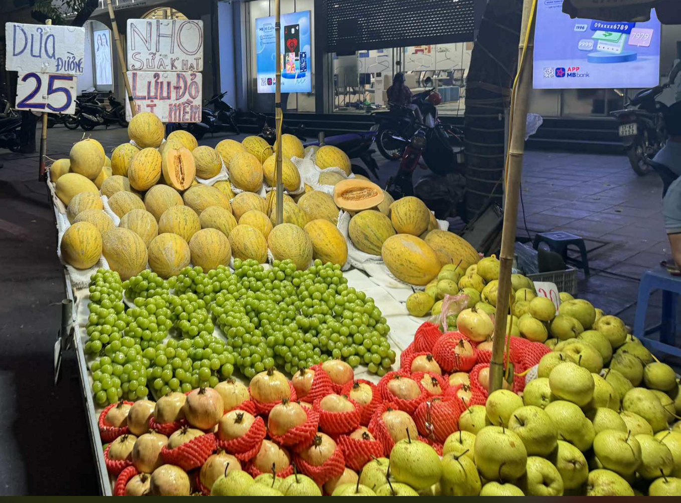 Với mặt hàng bình dân giá còn rẻ hơn. Chị Nhung dẫn chứng, nho sữa đóng theo rành giá 120.000 đồng/5kg (24.000 đồng/kg), táo đá 220.000 đồng/thùng 17kg (khoảng 13.000 đồng/kg), dưa vàng cát cháy 16.000 đồng/kg, hồng mật giá 17.000 đồng/kg…