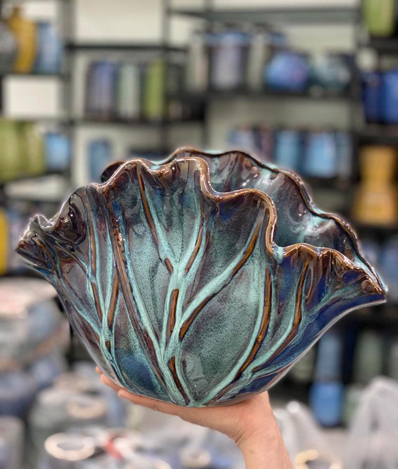 Bình cao 26cm, độ mở miệng 30cm phù hợp cắm nhiều loại hoa, đặc biệt là hoa sen, nên hội chị em có sở thích cắm hoa tươi ồ ạt chốt đơn mua chiếc bình lá sen này.