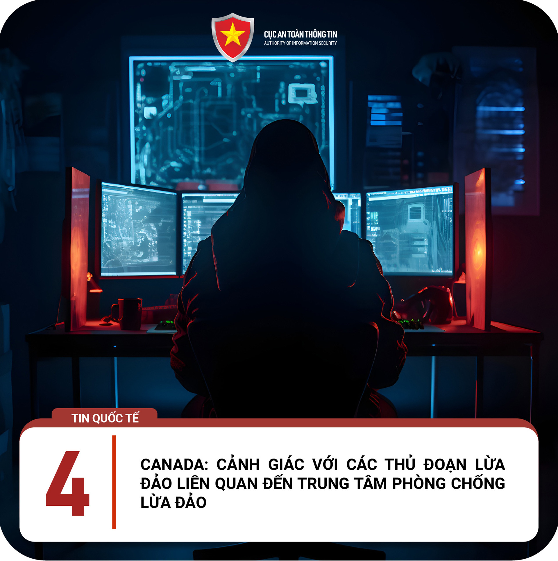 Theo Cục An toàn thông tin, mới đây Cảnh sát tỉnh Ontario (Canada) đã có cảnh báo về các thủ đoạn lừa đảo giả mạo Trung tâm phòng chống lừa đảo Canada – CAFC. Cụ thể, đầu tiên đối tượng giả mạo nhân viên ngân hàng, đơn vị cung cấp thẻ tín dụng hoặc các sàn thương mại điện tử để tiếp cận, thông báo tài khoản của người dùng đã bị tấn công và có dấu hiệu thực hiện những giao dịch đáng ngờ. Sau đó, đối tượng gửi email có logo CAFC nhằm gia tăng mức độ uy tín, yêu cầu nạn nhân cung cấp các dữ liệu cá nhân, thông tin ngân hàng và thực hiện các giao dịch, đánh cắp tiền.