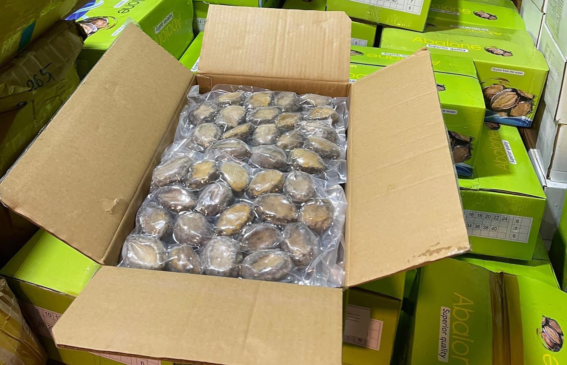Bào ngư là hàng cấp đông nên mỗi lần chị nhập lên tới 2-3 tấn. Trong kho lạnh lúc nào cũng có hàng, khách đặt mua được giao ngay, chị cho hay.