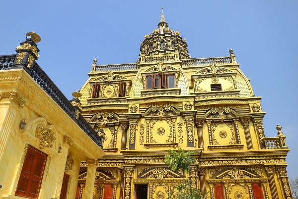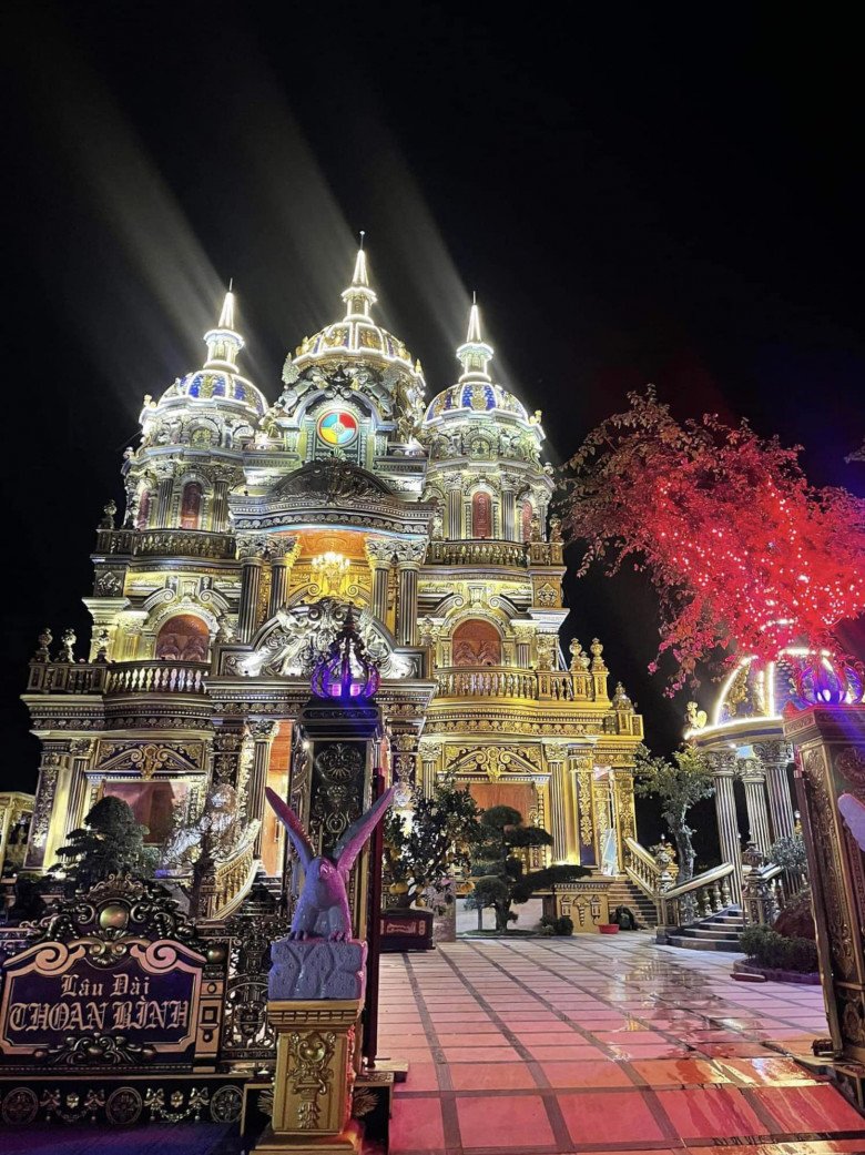 Kể về tòa lâu đài đang xây dựng mang tên “Lâu đài Thoan Bình”, vị “đại gia đồng nát” cho biết, tòa lâu đài được thiết kế theo kiến trúc Pháp. Tông màu chủ đạo là vàng đồng, tím xanh, gồm có 3 tầng chính, 3 tầng tum, tum cao nhất lên đến 18m. Công trình dự kiến sẽ hoàn thành trong năm nay. Dịp Tết Nguyên Đán vừa qua, mặc dù chưa chuyển về ở nhưng vị đại gia vẫn trang trí rực rỡ cho tòa lâu đài đồ sộ của gia đình. Ngày cuối năm, gia đình anh cũng tổ chức tiệc tất niên tại khuôn viên của lâu đài. Những hình ảnh được chủ nhân đăng lên trang cá nhân khiến ai xem cũng thích thú.