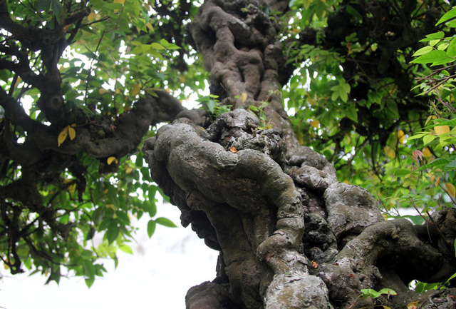 Được biết, cặp khế cũng được công nhận là cây di sản Việt Nam. Toàn bộ từ gốc đến thân cây nổi u cục, xù xì, thân uốn lượn thể hiện nét đẹp hiếm có khó tìm của cây cảnh.