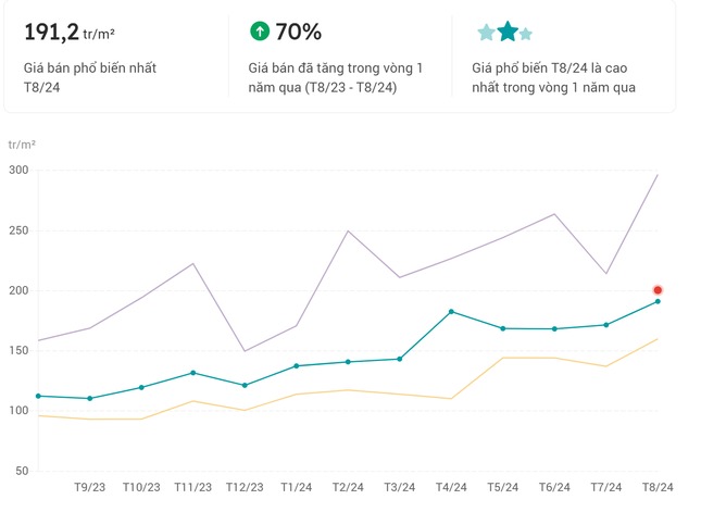 Theo các dữ liệu thu thập được, có thể thấy rằng nhiều nhà liền kề và biệt thự đã có mức giá chuyển nhượng tăng hơn 30% chỉ trong vòng một năm qua. Hiện tại, mức giá trung bình trên thị trường nhà liền kề đã vượt qua ngưỡng 188 triệu đồng/m2. Trong khi giá trung bình nhà biệt thự cũng đạt khoảng 178 triệu đồng /m2.