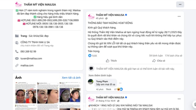 Ngày 27/111, trên mạng xã hội Tiktok liên tiếp xuất hiện các clip có nội dung “tạm biệt Mailisa”, “khép lại hành trình gắn bó tại Mailisa” khiến cư dân mạng bàn tán về tình hình hoạt động của thẩm mỹ viện này.