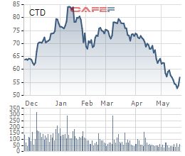 Một tên tuổi lớn khác là Coteccons (CTD) cũng có những biến động kém tích cực khi liên tục giảm sâu, thậm chí về gần tới đáy Covid-19 năm 2020.
