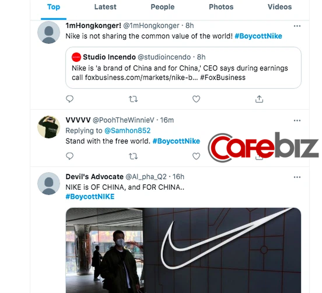 "Nike chẳng thèm quan tâm tới giá trị chung của thế giới vậy thì tại sao phải quan tâm tới họ", một tài khoản khác nhận định.