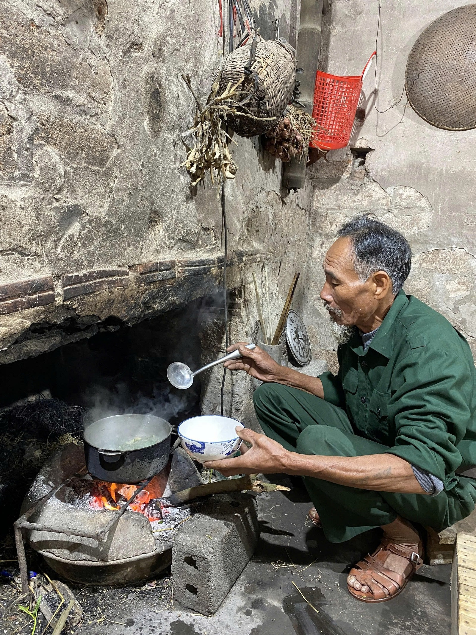 “Có những thứ chưa biết thì tôi phải hỏi con, nhưng có những thứ không cần phải nói tôi cũng biết. Ví dụ, luộc hay nướng đất con gà sao cho đẹp, cho ngon, từng công đoạn thực hiện như thế nào,... thì không cần phải nói, đó là sở trường của tôi rồi”, ông Phong tự hào khoe.