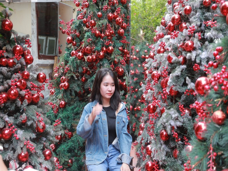 Tại một quán cà phê ở quận Tân Bình, bạn Huyền Nhung (ngụ quận 3) cho biết thấy quán có trang trí Giáng sinh sớm nên đã rủ bạn bè đến chụp ảnh lưu lại kỷ niệm.