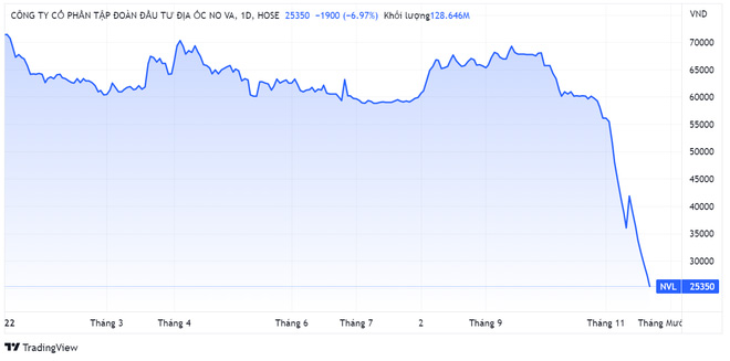 Trên thị trường chứng khoán, cổ phiếu NVL của Novaland vẫn tiếp tục chuỗi lao dốc khốc liệt bởi những tin đồn về khó khăn tài chính hay triển vọng kinh doanh mờ nhạt.