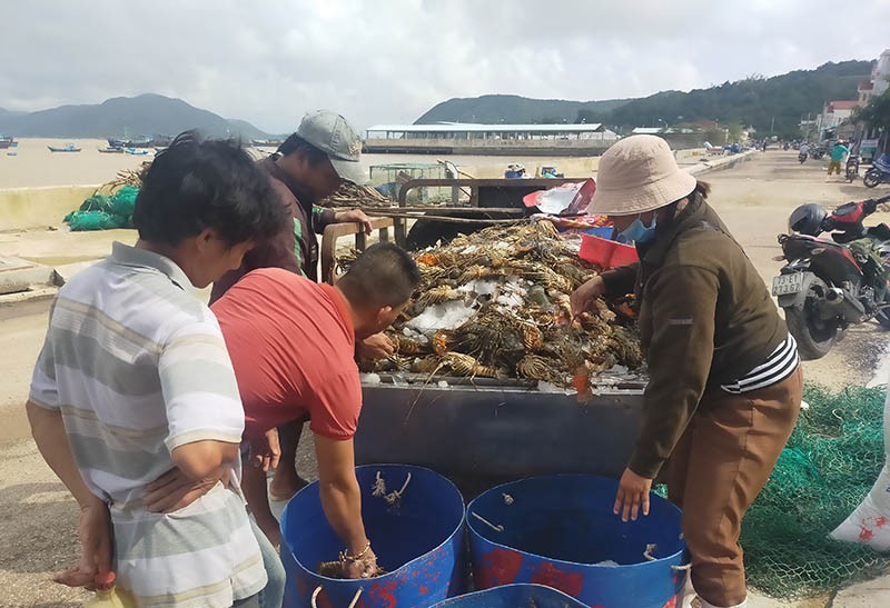 Đầu tháng 2 năm nay, tại vùng nuôi thị xã Sông Cầu (Phú Yên), tôm hùm rớt giá xuống còn khoảng 500.000 đồng/kg, thấp hơn 200.000-300.000 đồng/kg so với trước khi dịch bệnh xảy ra.