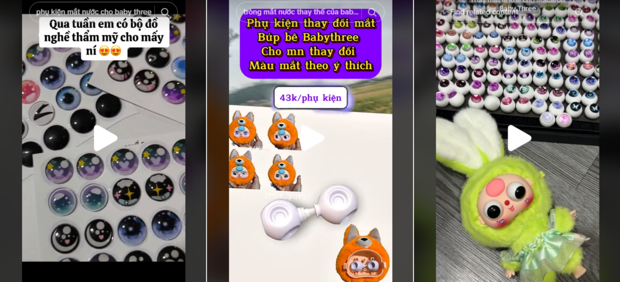Nhiều người sau khi bóc hộp nhiều lần vẫn không tìm được con búp bê mình mong đợi đã quyết định đem con đang sở hữu đi sửa, làm đẹp. Từ đó, dịch vụ làm đẹp, sửa tật mắt lé, mắt lệch, độ mắt cho Baby Three ra đời”.