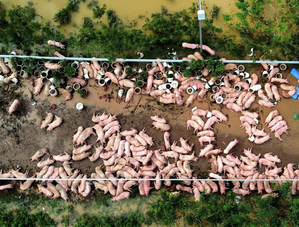 Thực tế đợt bão lũ vừa qua, lượng gia súc bị chết lên tới gần 26.500 con, trong đó chủ yếu là lợn. Có những trang trại chăn nuôi bị ngập, làm chết hàng nghìn con lợn; số khác phải "bán chạy" do chuồng trại bị hư hỏng.